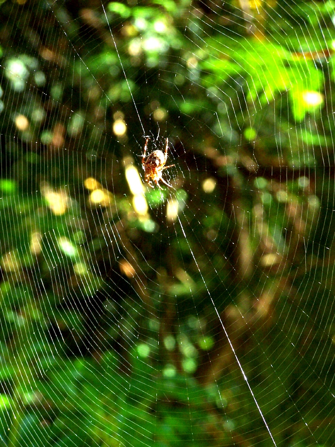 This past week, this web spends two days next to my front door. Spider strategically places it so we humans can walk in and out of the house without running into the primary thread responsible for anchoring the web in space. The second afternoon, a squall moves through. When I look next, the web is no more, evaporated into thin air.