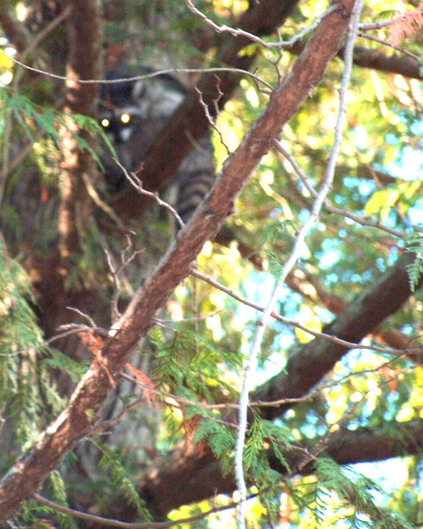 I’m just sure that racoon has been surveying the stream for fishy critters and knows a whole lot more than we do about their whereabouts. I think maybe we’ll find bits and pieces of fish near the perimeter of the tree.