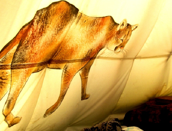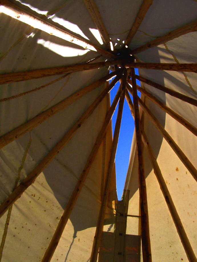 In the teepee I feel a sense of sacred space. My imagination soars along the converging poles leaning toward the sky and something deep in my body feels at home sitting round the fire pit. The images on the wall spark my love for mystery and other lives.