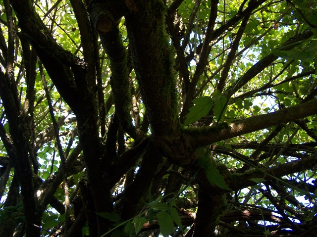 When everyone is lying down on the warm buzzing earth, I begin to drum. The drum immediately begins singing and even embellishes with the sound of click sticks though no person I see is clicking sticks. Despite no walls to contain the sound, I’m “wombed” in vibrational warmth. Living in two worlds simultaneously, I watch out for each person and hold safe our bower as container. Though I am not officially “trancing”, I see that I am meant to dance for the drum. I am the beater of the drum. Actually, I am the whole ecosystem with trees embedded in sky. I begin to know the rudiments of my disk shaped mask.