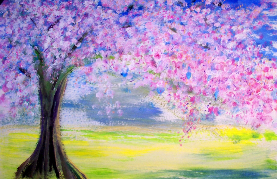 Today when I asked my soul what to paint as a kid, cherry blossoms surfaced immediately. I kept chanting things like: Keep it simple. How does it feel, how do I paint the look of my feelings, how do those kazillion-pink-and-white-gossamer-piled-on-top-of-each-other blossoms make me feel???? Do what it takes to bring out the feeling.