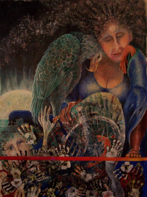 I am blessed and blissed by this image. “Tidal Wisdom” could also be titled “Handcestors.” I love the misspelling of the word ancestors which popped out of my fingers on the keyboard early on in the painting process.